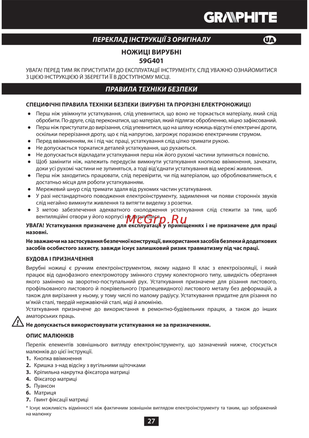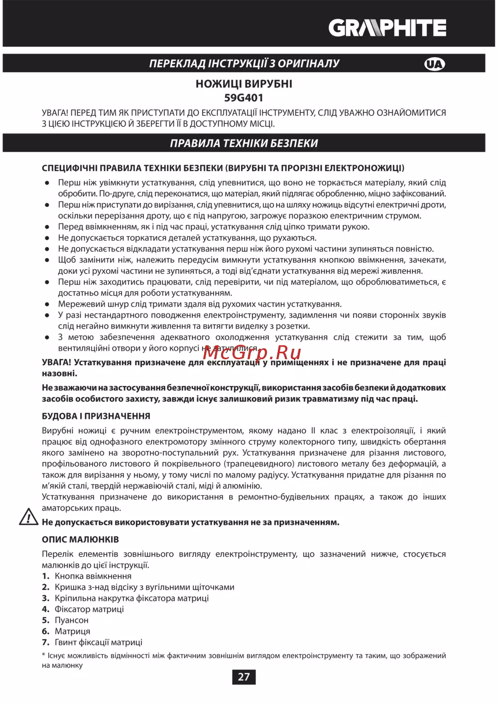 GRAPHITE 59G401 — інструкція з експлуатації вирубних ножиць: безпека та використання [27/104]