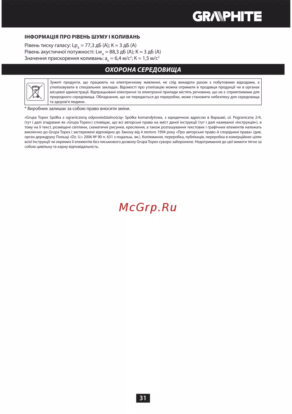 - Виробник залишає за собою право вносити зміни p.31