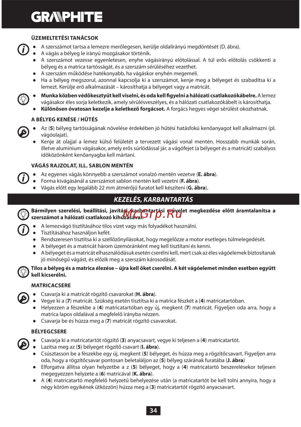 GRAPHITE 59G401 [34/104] Kezelés karbantartás