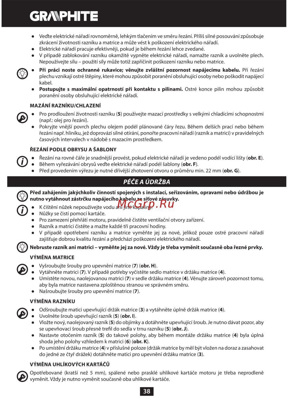 GRAPHITE 59G401 — jak správně používat elektrické nářadí pro efektivní řezání [38/104]