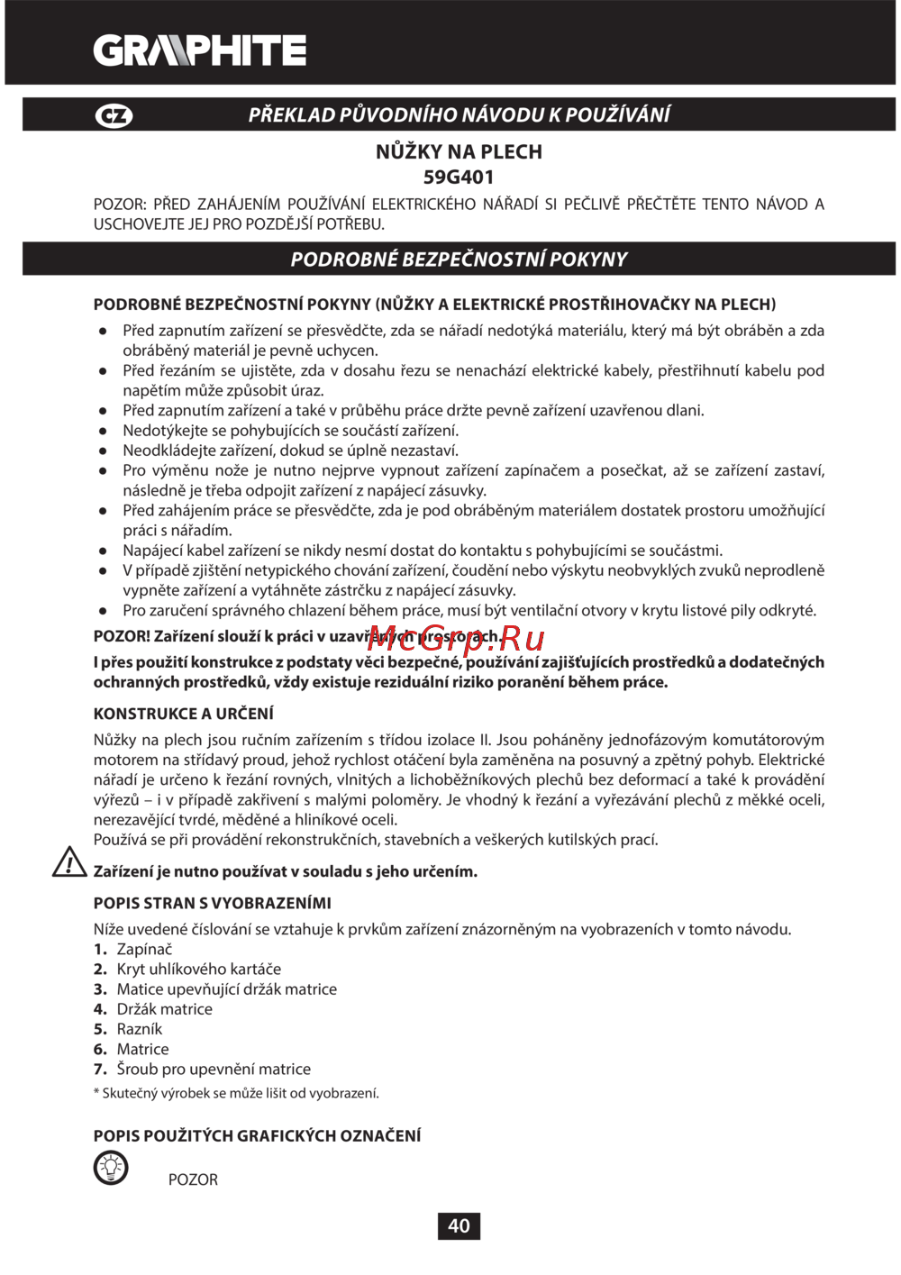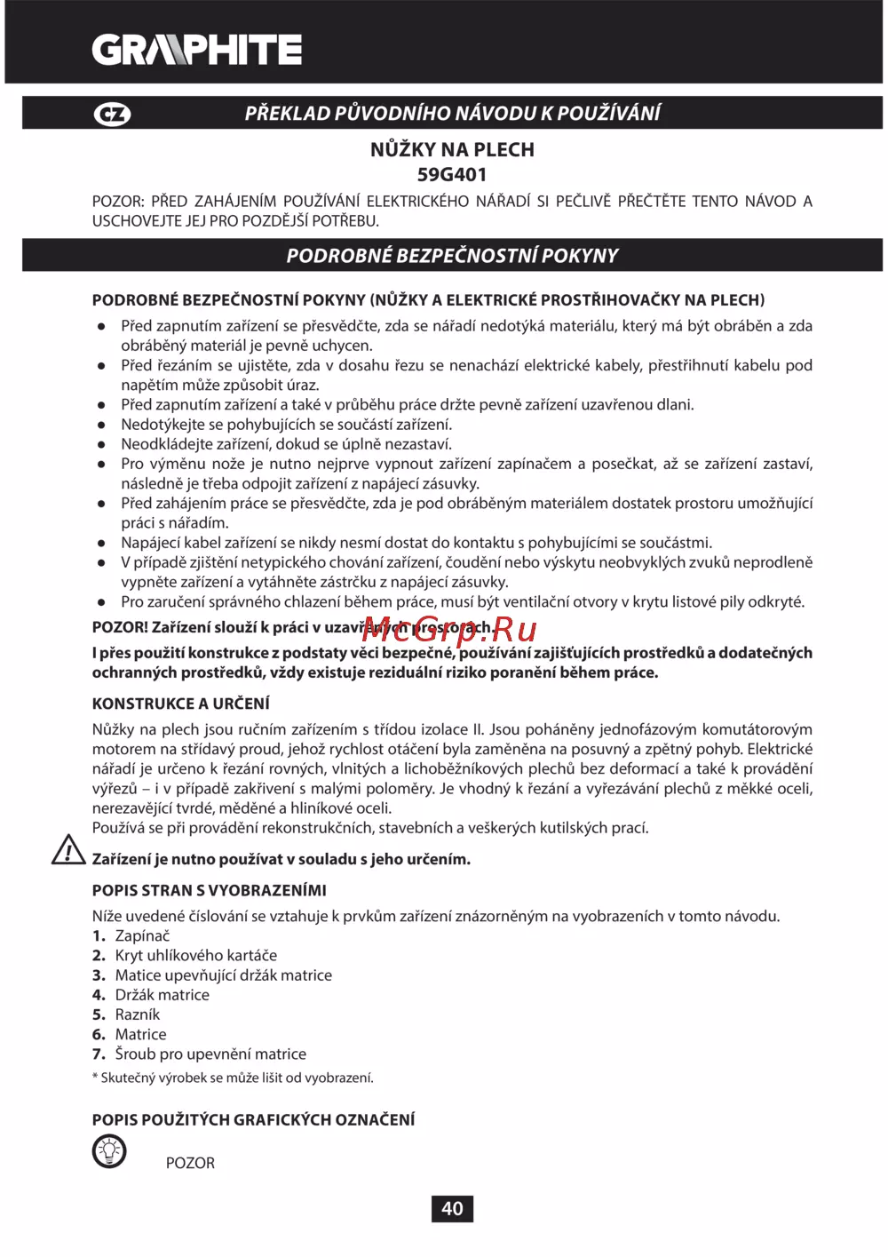 GRAPHITE 59G401 [40/104] Překlad původního návodu k používání