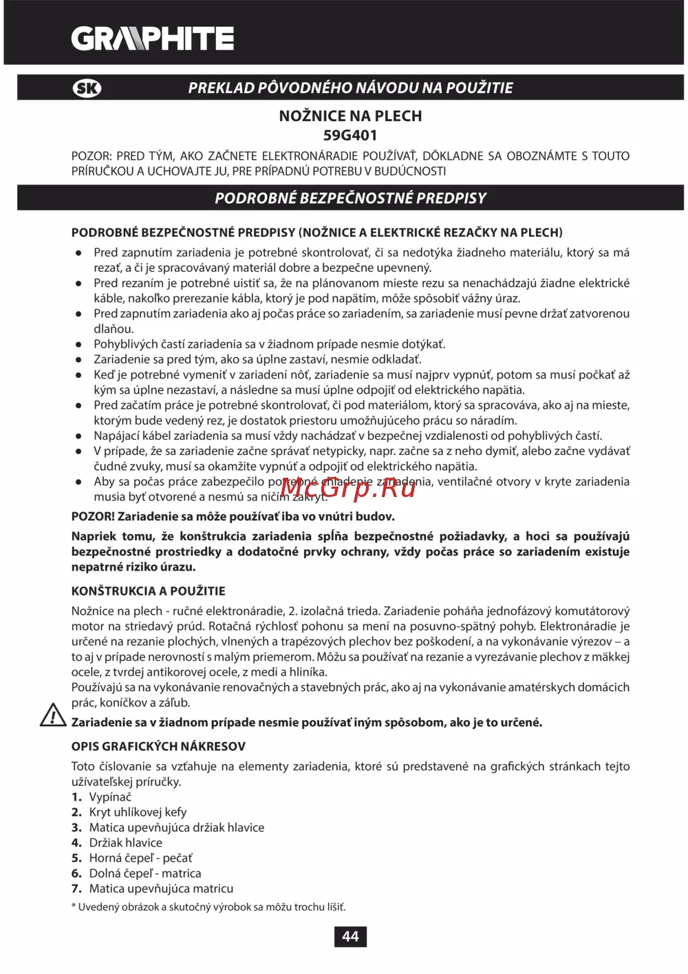 GRAPHITE 59G401 [44/104] Preklad pôvodného návodu na použitie
