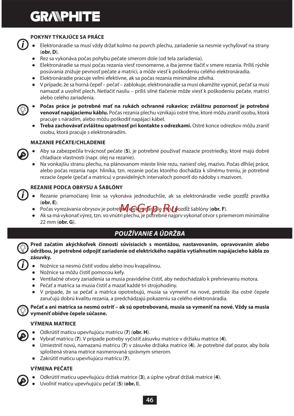 GRAPHITE 59G401 — bezpečné a efektívne používanie elektronáradia pri rezaní plechu [46/104]