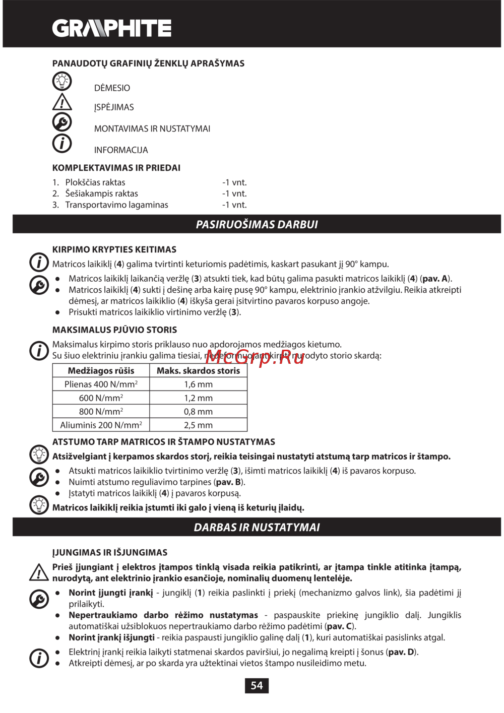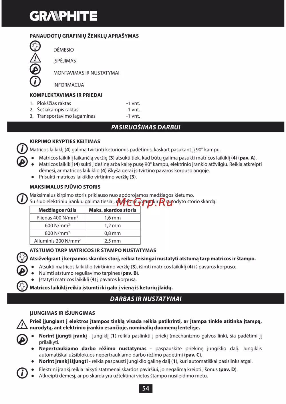 GRAPHITE 59G401 [54/104] Pasiruošimas darbui