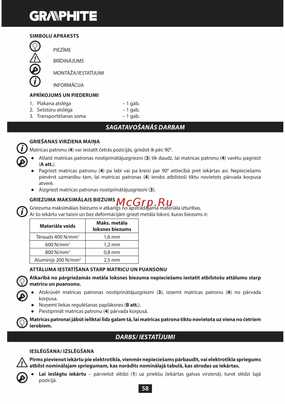 ![GRAPHITE 59G401 [58/104] Sagatavošanās darbam](/views2/1382039/page58/bg3a.png)