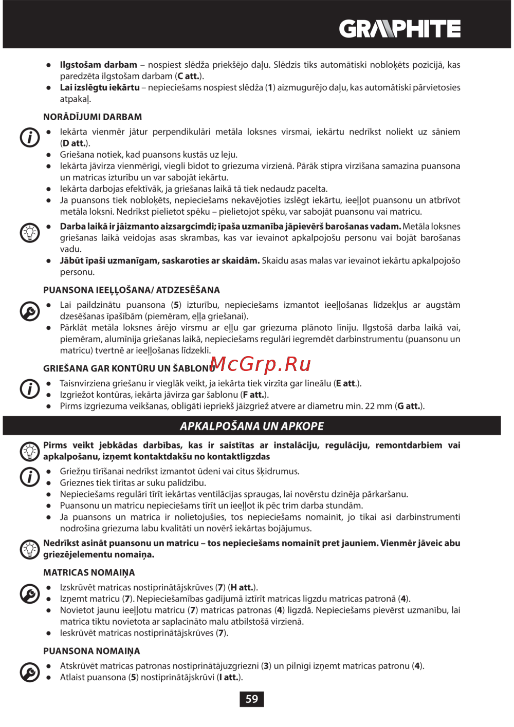 GRAPHITE 59G401 [59/104] Apkalpošana un apkope