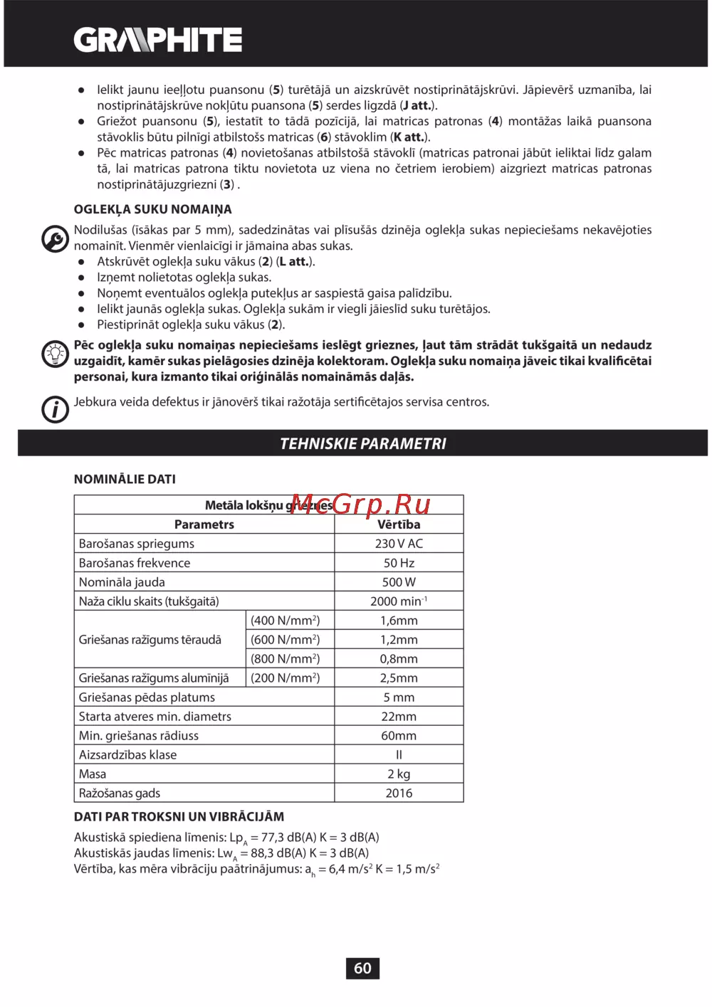 GRAPHITE 59G401 [60/104] Tehniskie parametri