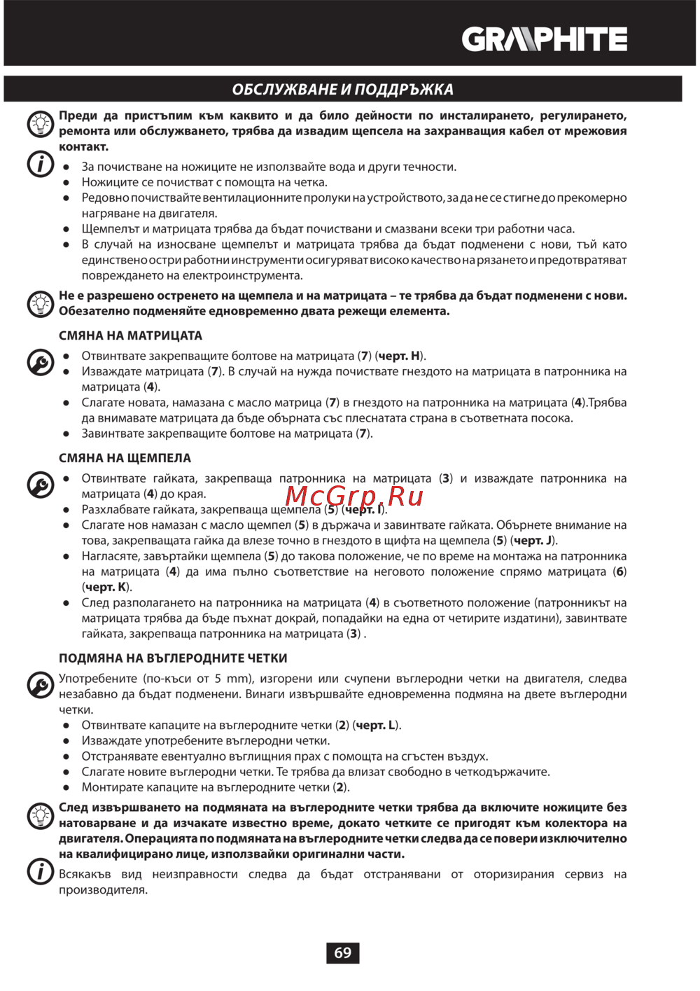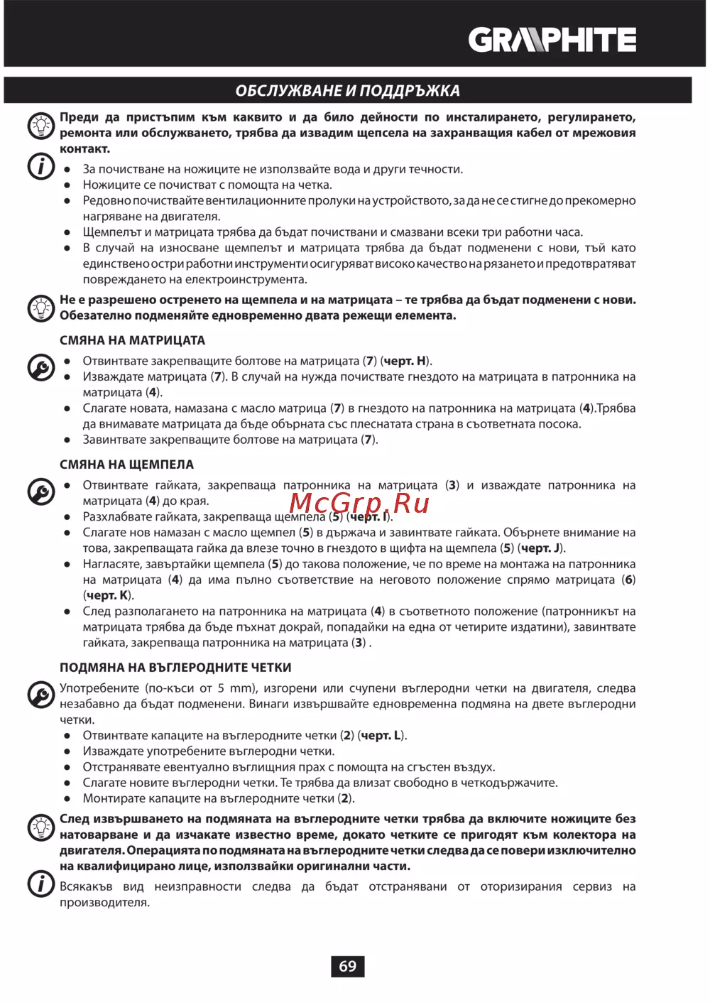 GRAPHITE 59G401 — инструкции за обслужване и поддръжка на електроинструменти [69/104]