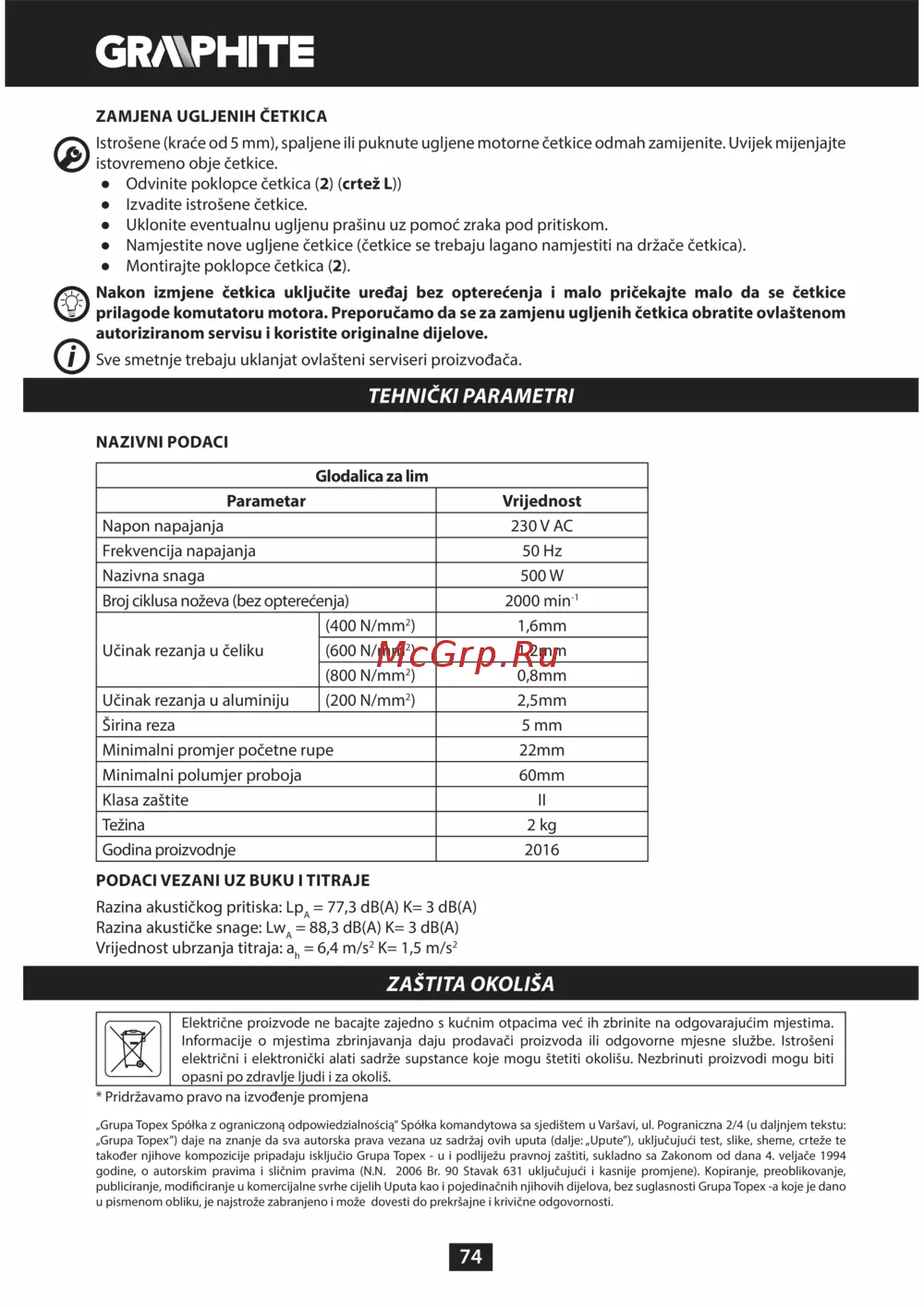 GRAPHITE 59G401 [74/104] Zaštita okoliša