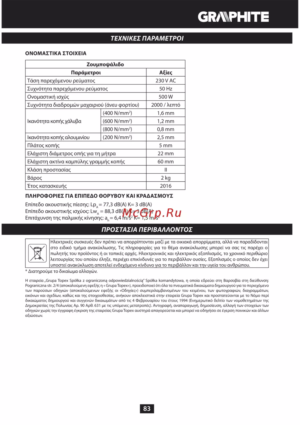 GRAPHITE 59G401 [83/104] Τεχνικεσ παραμετροι