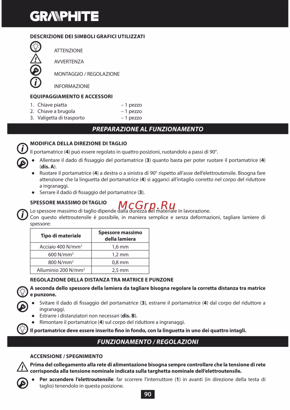 GRAPHITE 59G401 [90/104] Preparazione al funzionamento