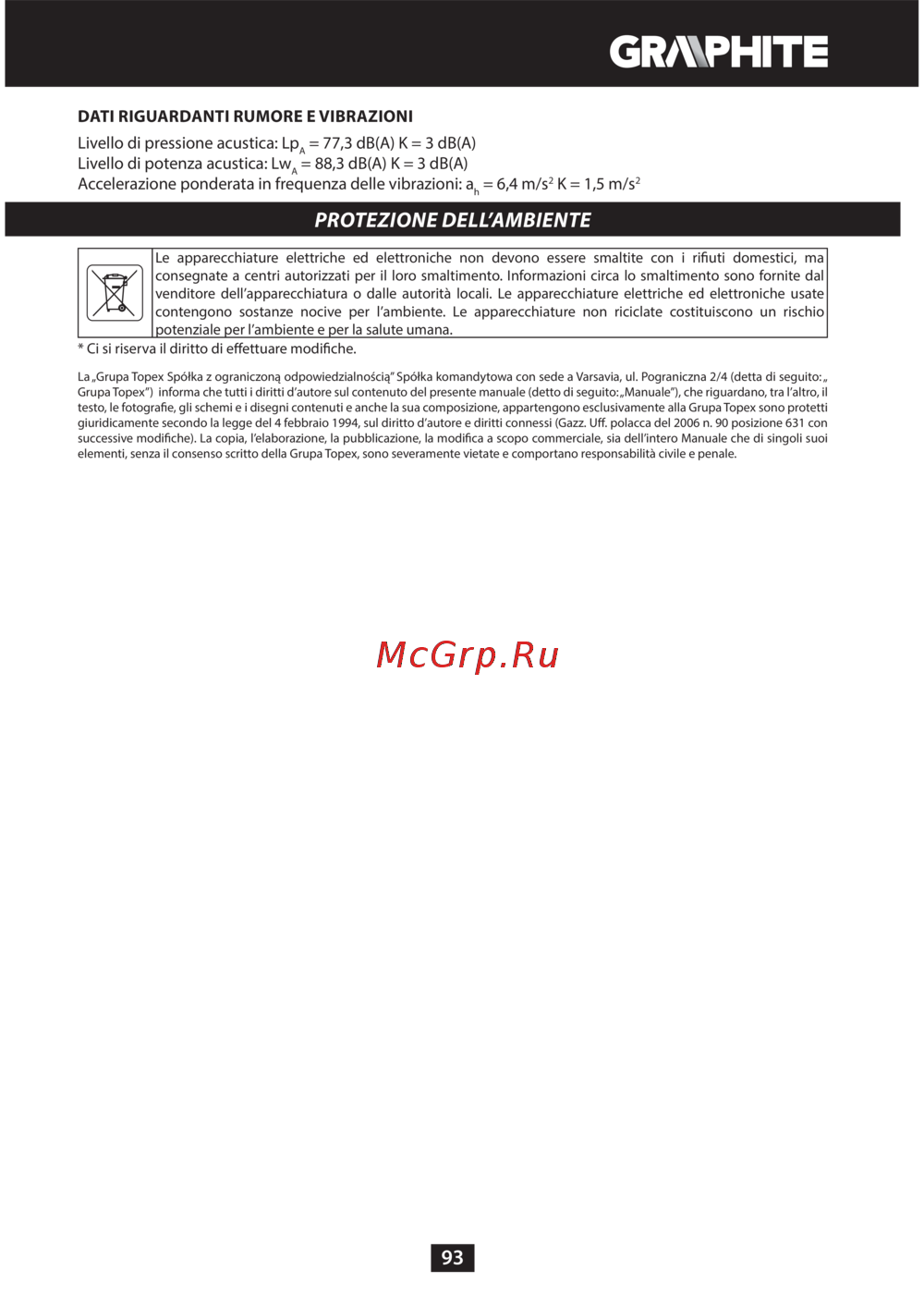 ![GRAPHITE 59G401 [93/104] Protezione dell ambiente](/views2/1382039/page93/bg5d.png)