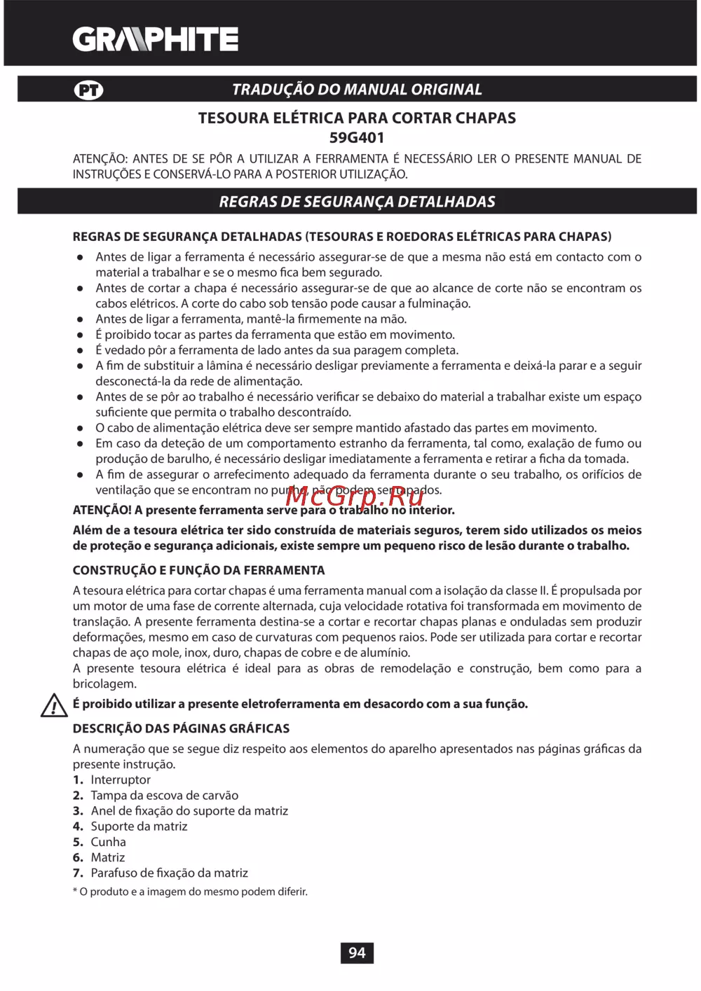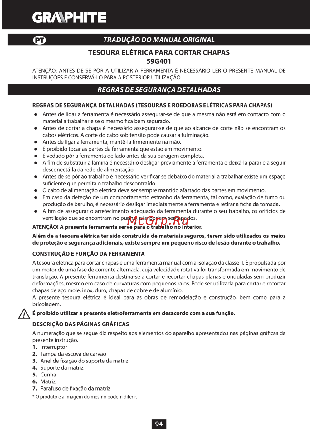 GRAPHITE 59G401 [94/104] Tradução do manual original