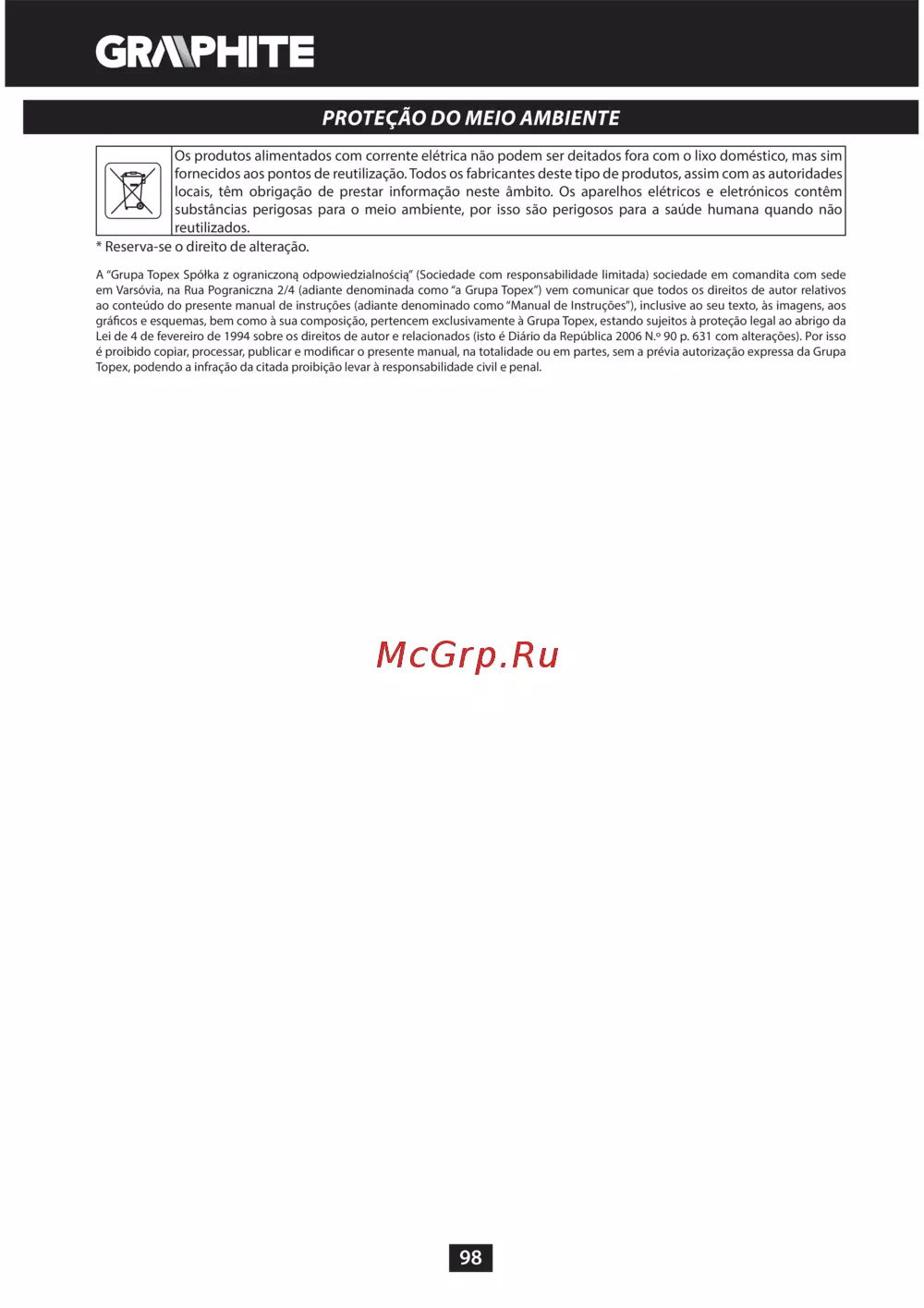 GRAPHITE 59G401 [98/104] Proteção do meio ambiente