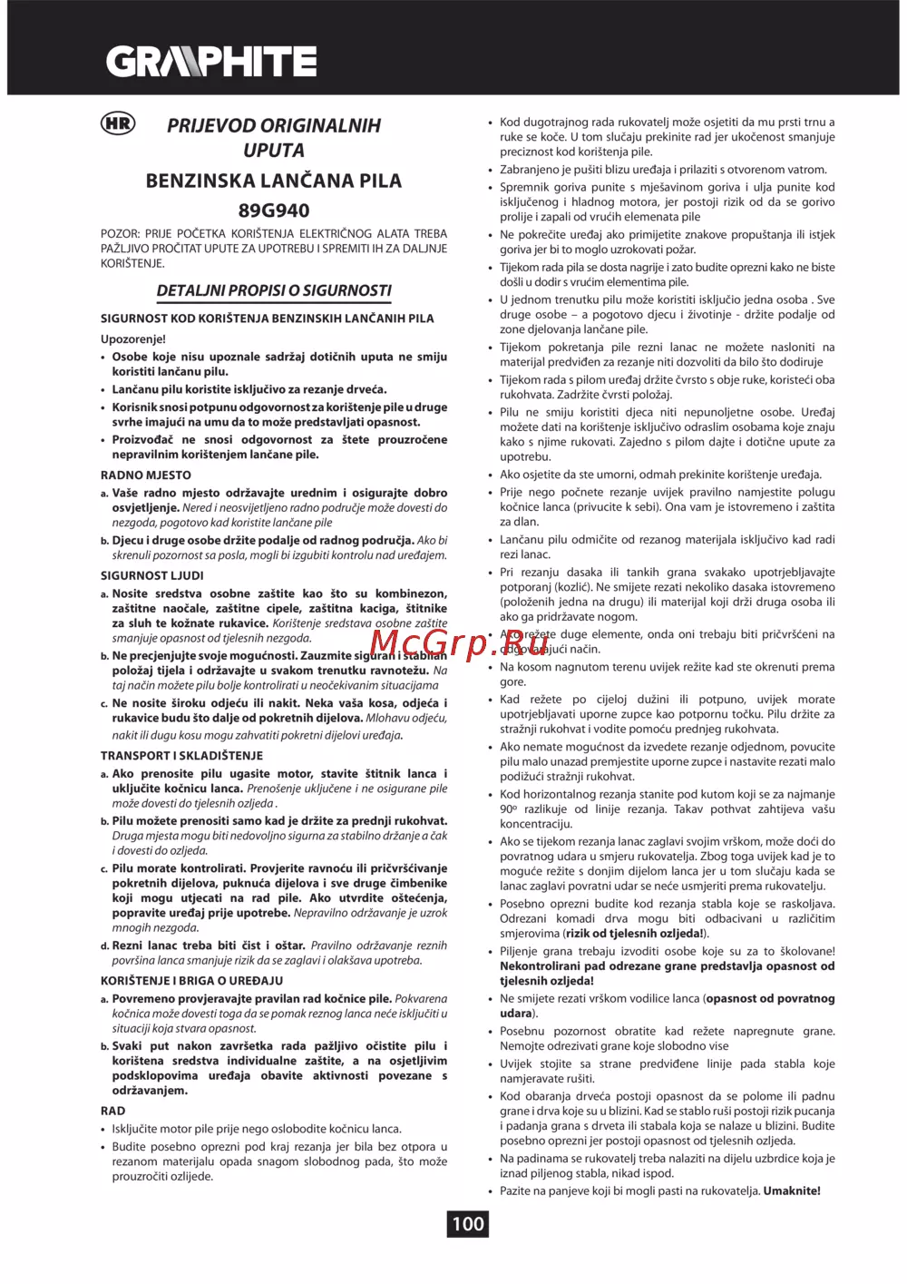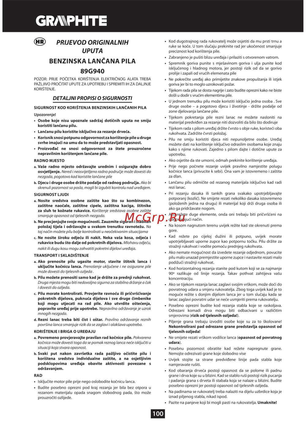 GRAPHITE 89G940 [100/136] Prijevod originalnih uputa benzinska lančana pila 89g940