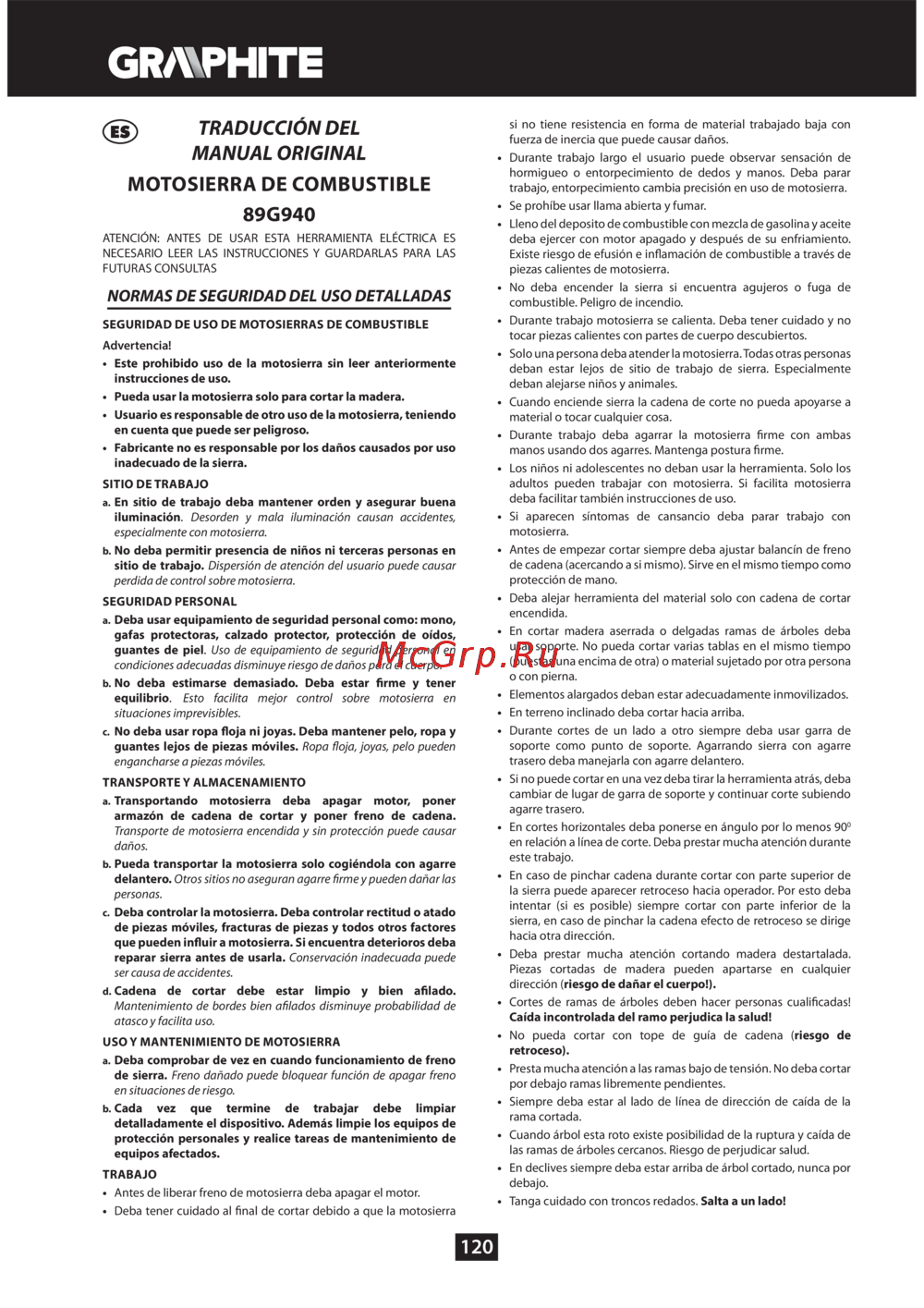 GRAPHITE 89G940 [120/136] Traducción del manual original motosierra de combustible 89g940