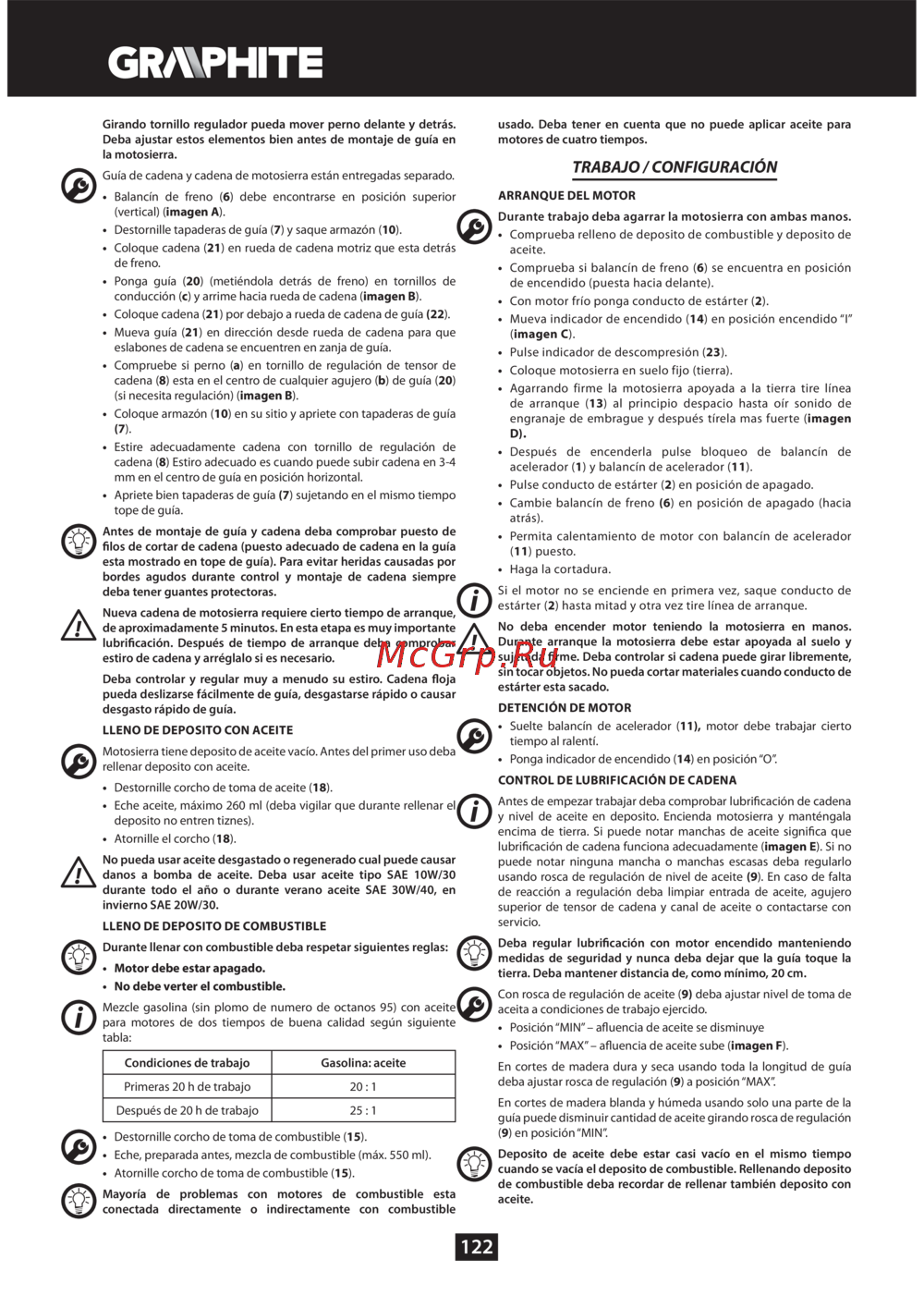 - Traducción del manual original motosierra de combustible 89g940 p.120