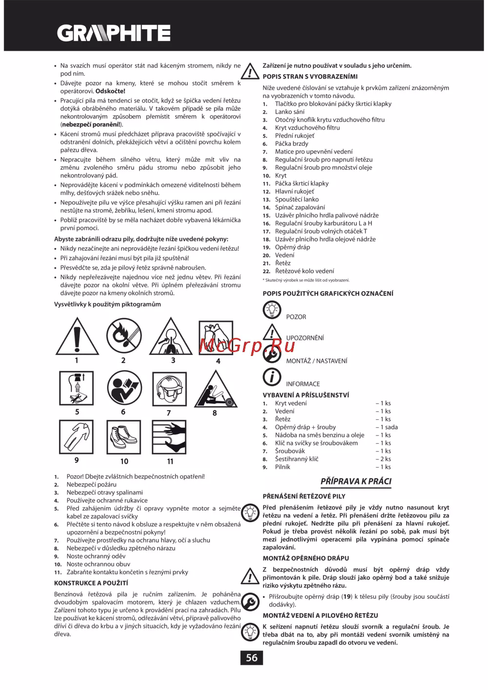 - Překlad původního návodu k používání benzínová řetězová pila 89g940 p.55