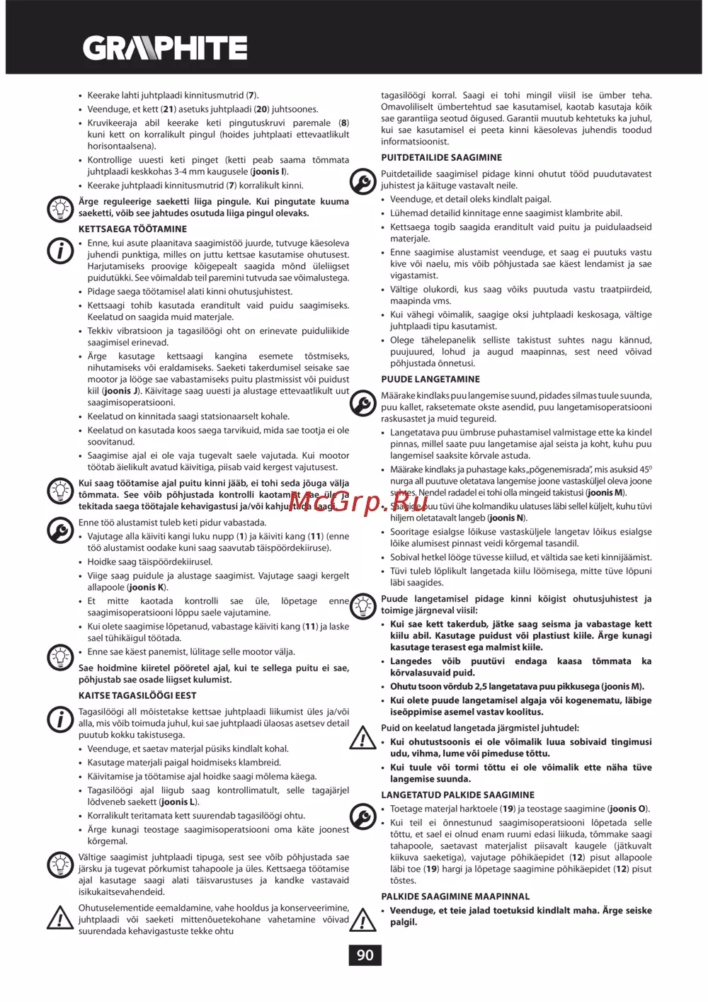 - Algupärase kasutusjuhendi tõlge bensiinimootoriga kettsaag 89g940 p.86