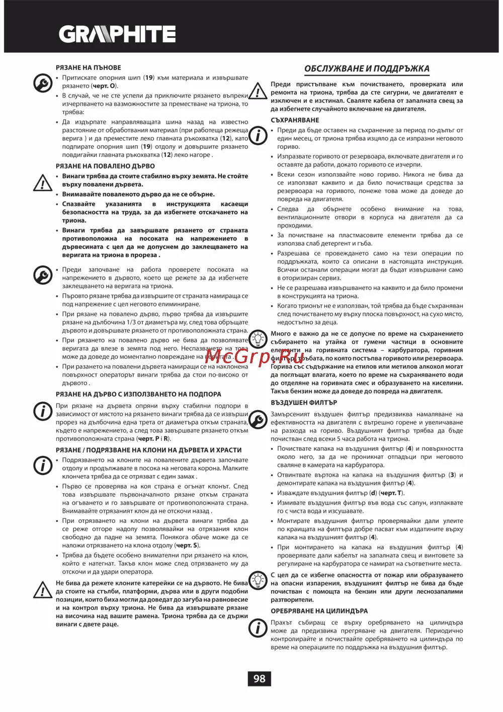 - Превод на оригиналната инструкция бензинов верижен трион 89g940 p.92