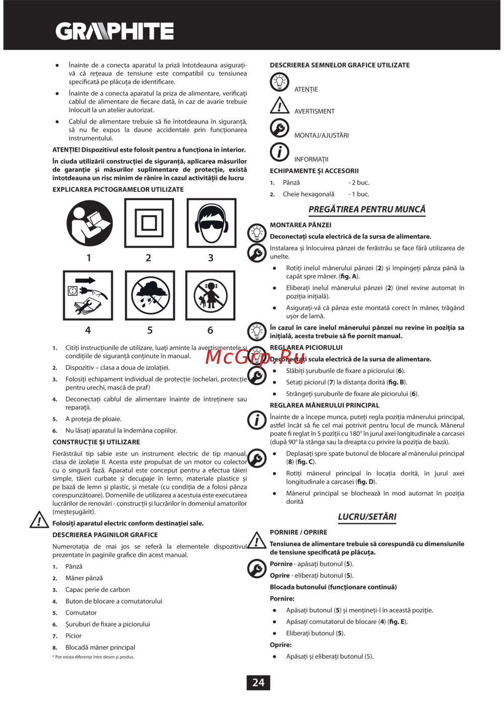 ![GRAPHITE 58G971 [24/60] Pregătirea pentru muncă](/views2/1382042/page24/bg18.png)