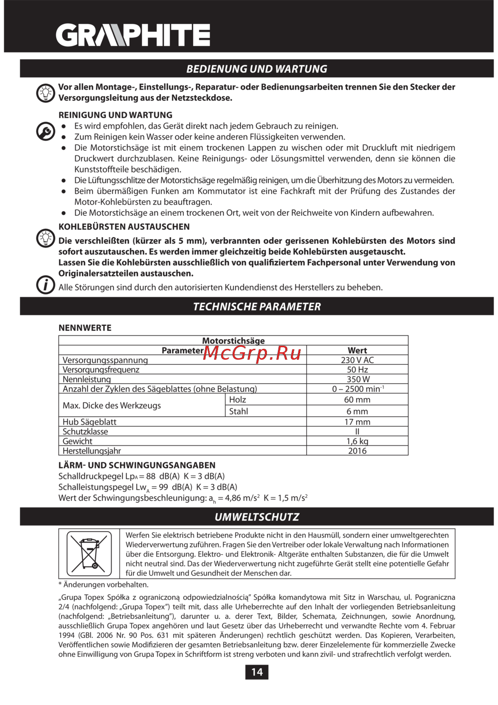 GRAPHITE 58G960 [14/64] Umweltschutz