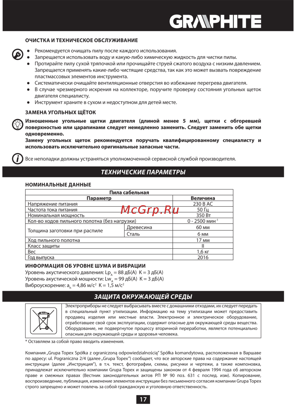 GRAPHITE 58G971Инструкция по эксплуатации -