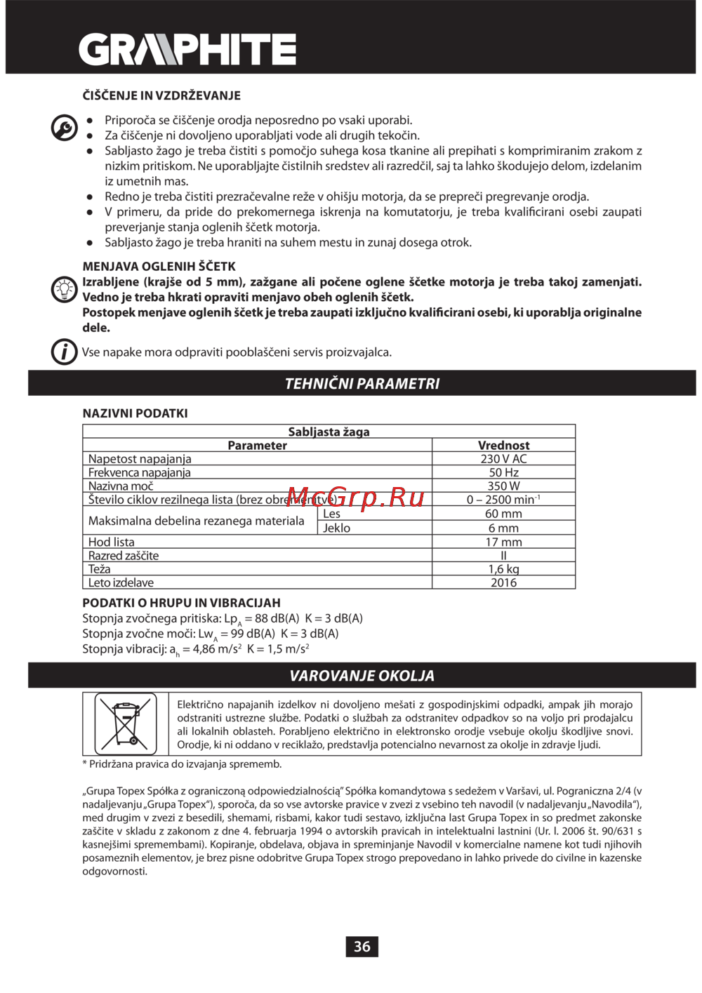GRAPHITE 58G960 [36/64] Varovanje okolja