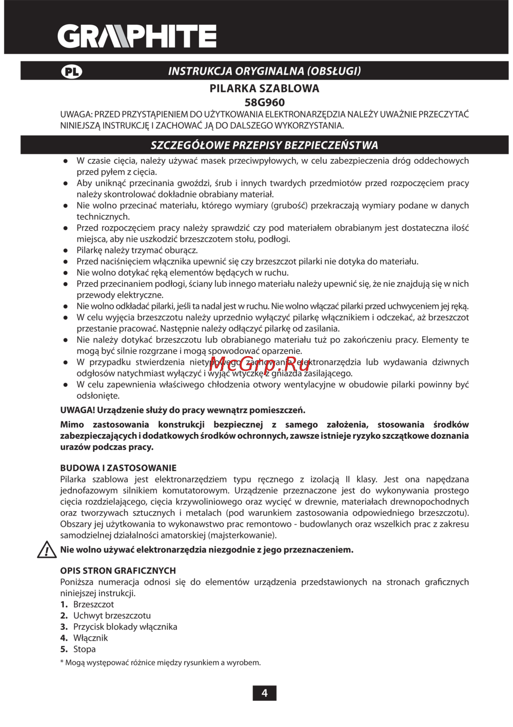 GRAPHITE 58G960 [4/64] Szczegółowe przepisy bezpieczeństwa