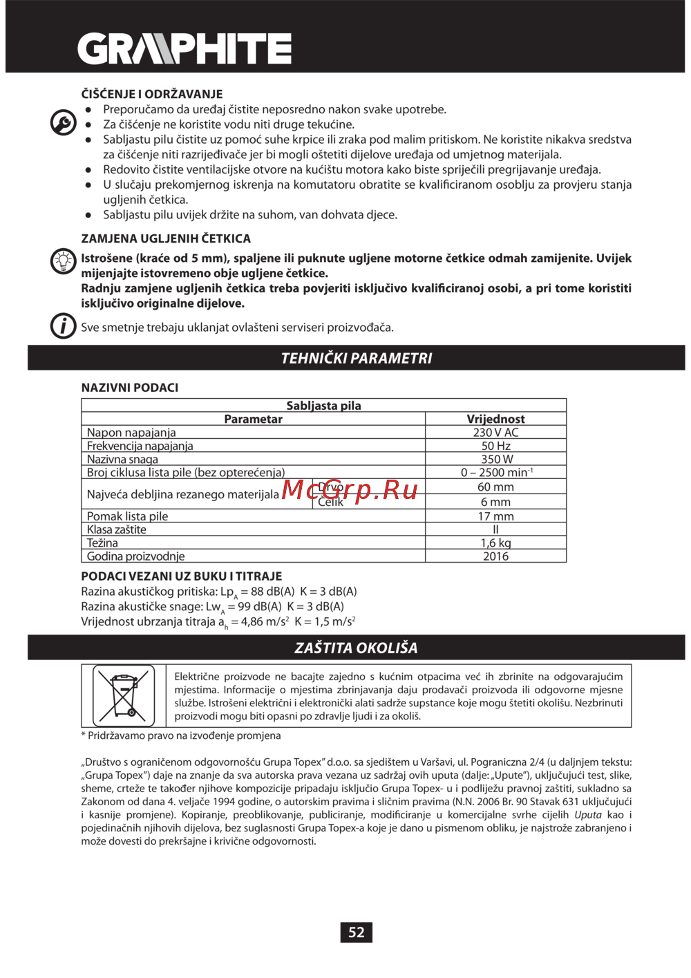 GRAPHITE 58G960 [52/64] Zaštita okoliša