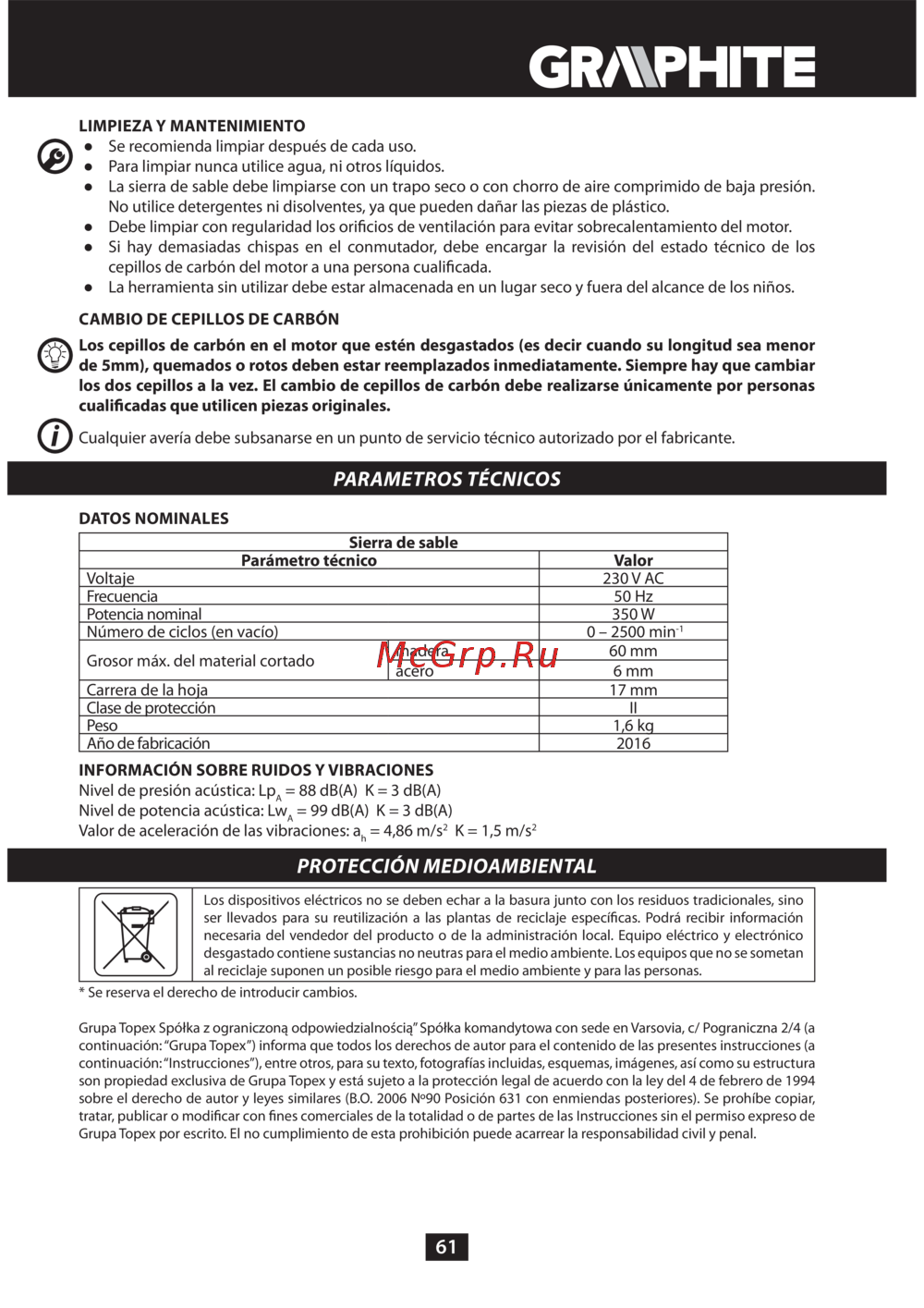 GRAPHITE 58G970Инструкция по эксплуатации -