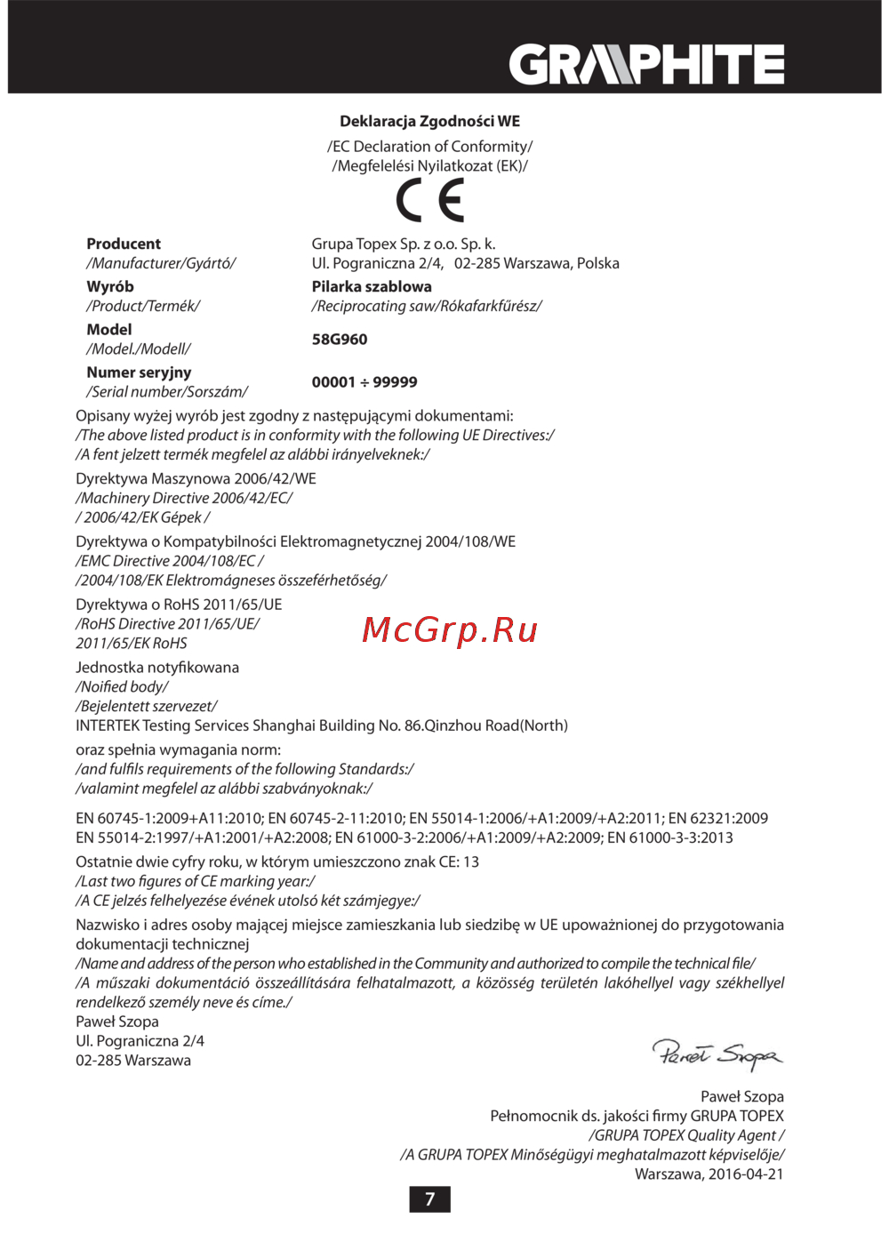 GRAPHITE 58G960 Инструкция по эксплуатации онлайн [7/64] 320600