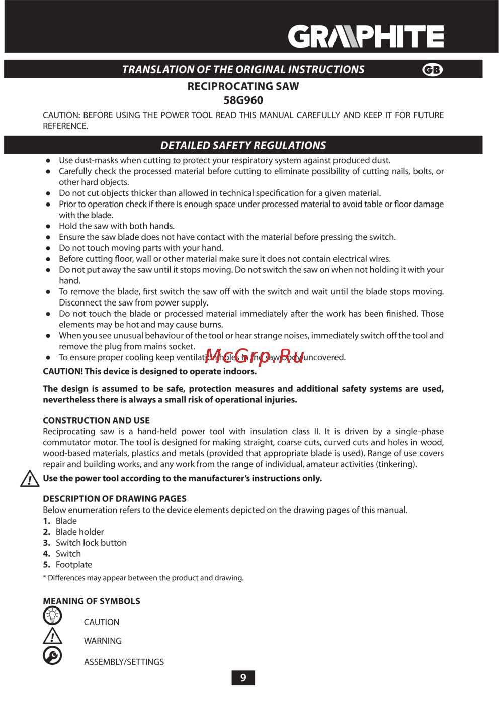 GRAPHITE 58G960 [9/64] Translation of the original instructions