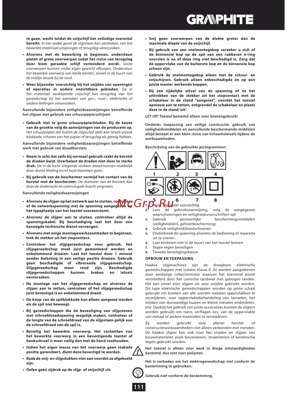 GRAPHITE 59G208 — veiligheidsrichtlijnen voor slijpgereedschap en snijtechnieken [111/118]