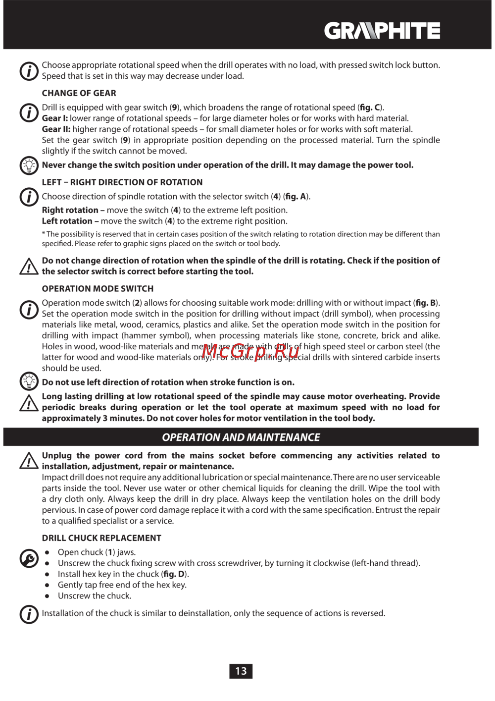 GRAPHITE 58G718 — руководство по эксплуатации и настройке сверла [13/88]