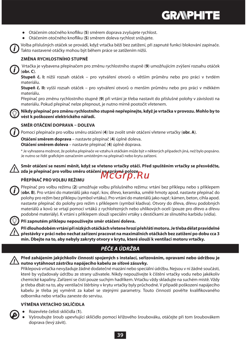 ![GRAPHITE 58G718 [39/88] Péče a údržba](/views2/1382136/page39/bg27.png)