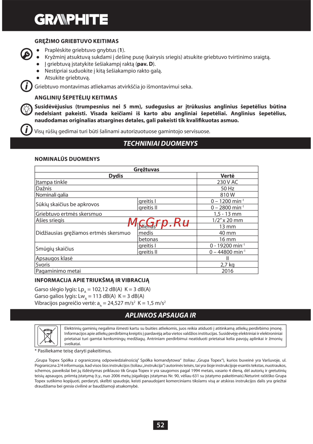 GRAPHITE 58G718 [52/88] Techniniai duomenys