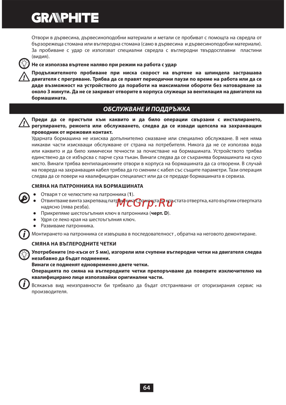GRAPHITE 58G718 [64/88] Обслужване и поддръжка