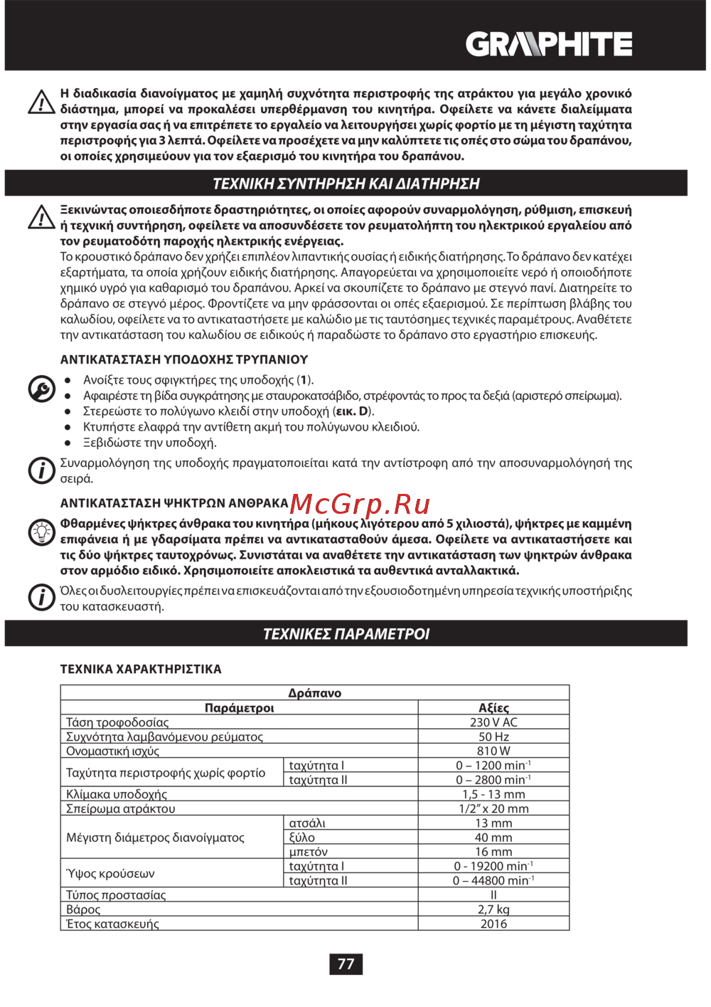 GRAPHITE 58G718 [77/88] Τεχνικη συντηρηση και διατηρηση