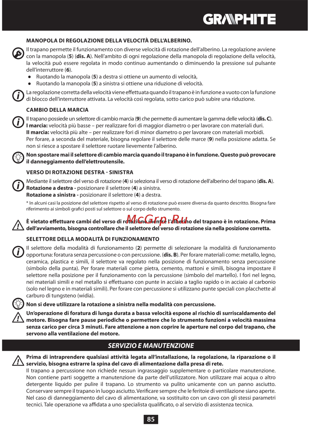 GRAPHITE 58G718 [85/88] Servizio e manutenzione