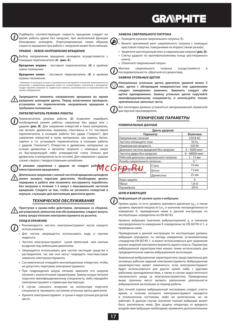 GRAPHITE 58G735 — как правильно использовать и обслуживать дрель: советы и рекомендации [17/64]