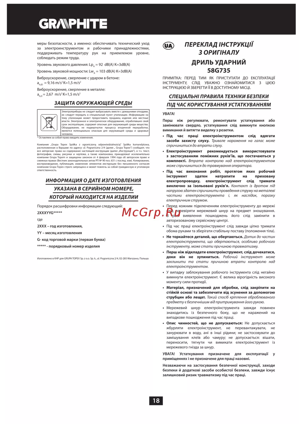 GRAPHITE 58G718Инструкция по эксплуатации -