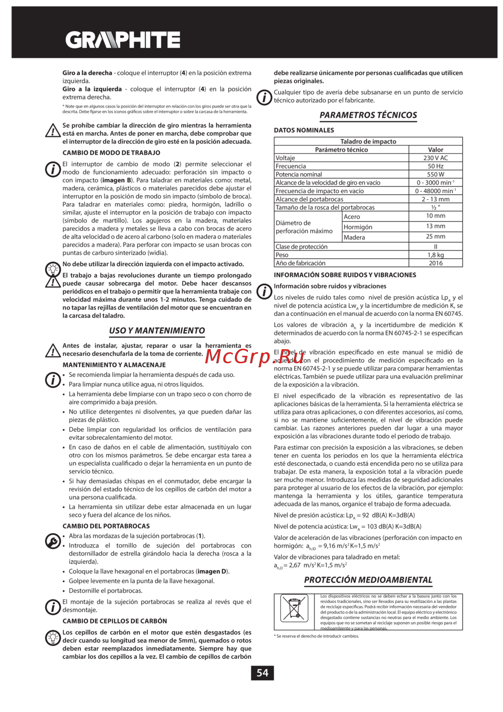 GRAPHITE 58G735 [54/64] Parametros técnicos