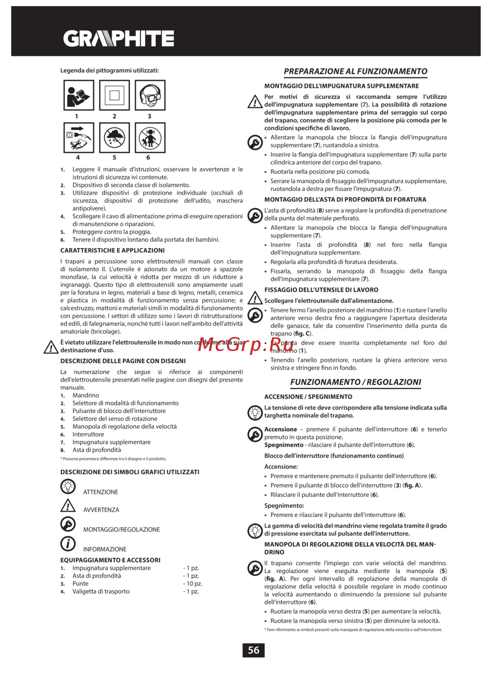 GRAPHITE 58G735 [56/64] Preparazione al funzionamento