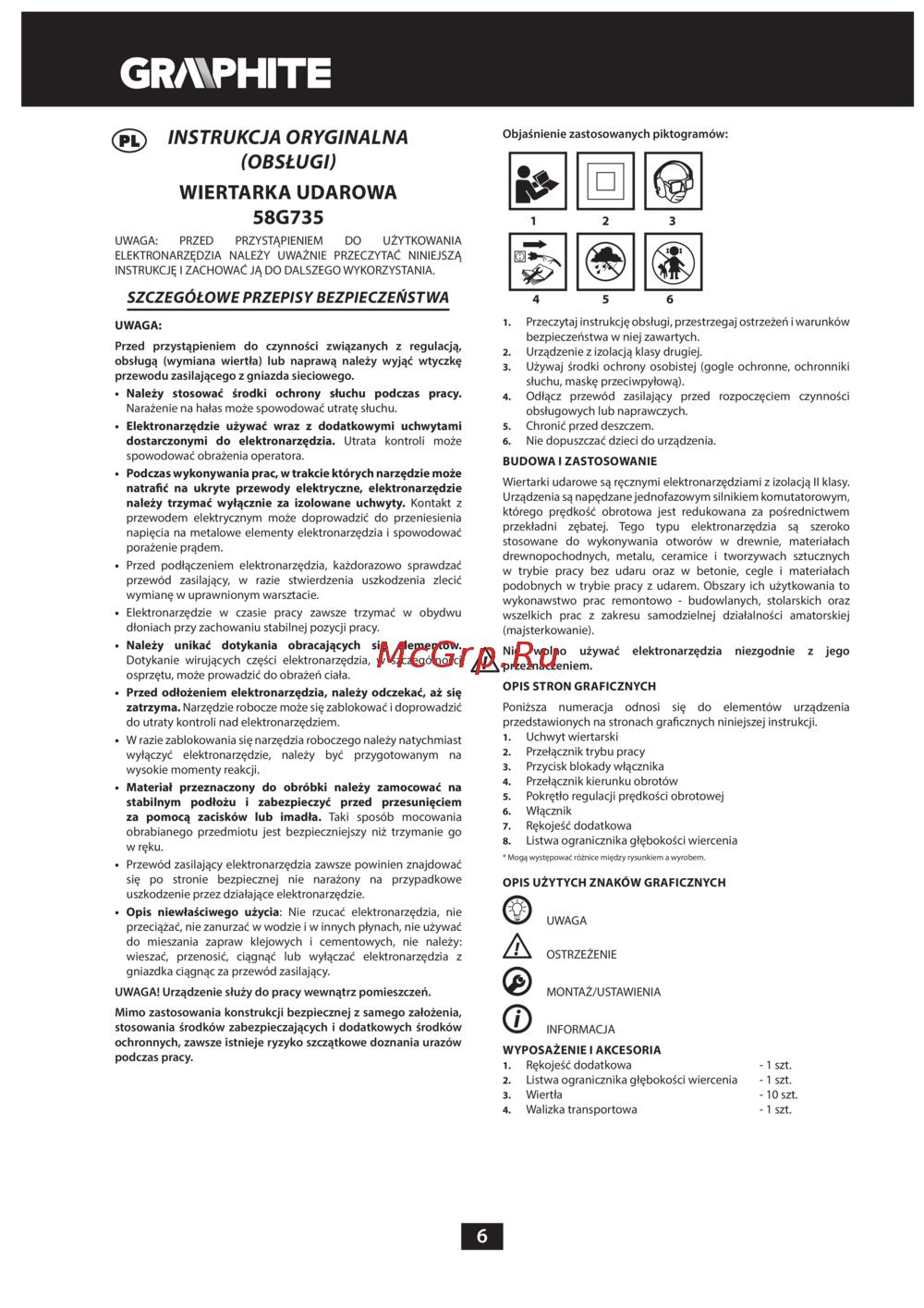 GRAPHITE 58G735 [6/64] Instrukcja oryginalna obsługi wiertarka udarowa 58g735