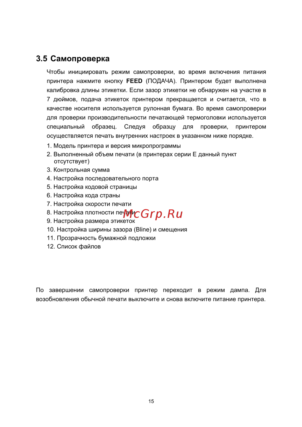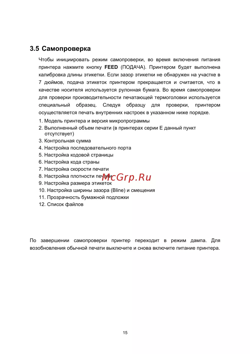 По завершении самопроверки принтер переходит в режим дампа. Для