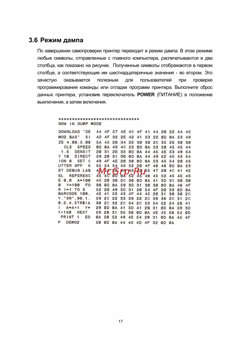 По завершении самопроверки принтер переходит в режим дампа. В этом режиме