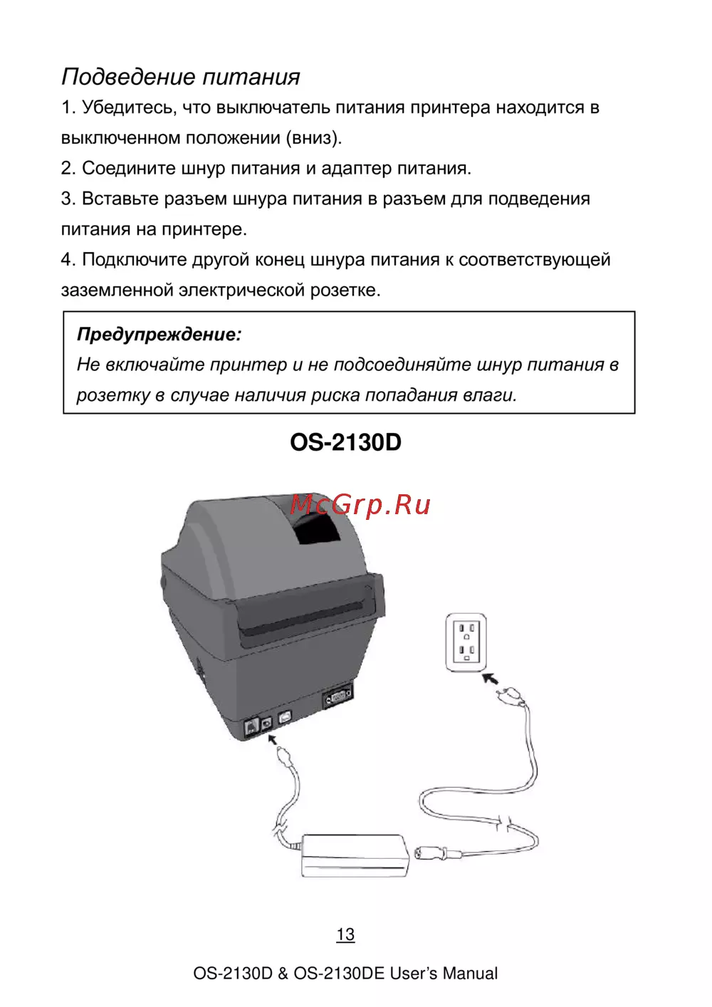 Argox OS-2130 DE [14/76] Подведение питания