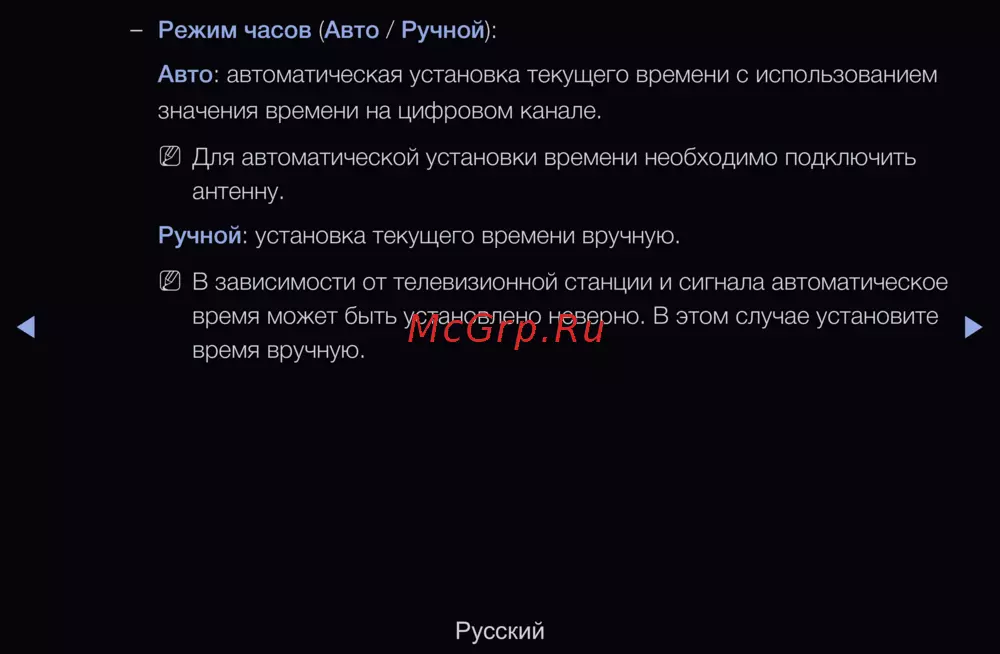 Режим часов (Авто / Ручной):