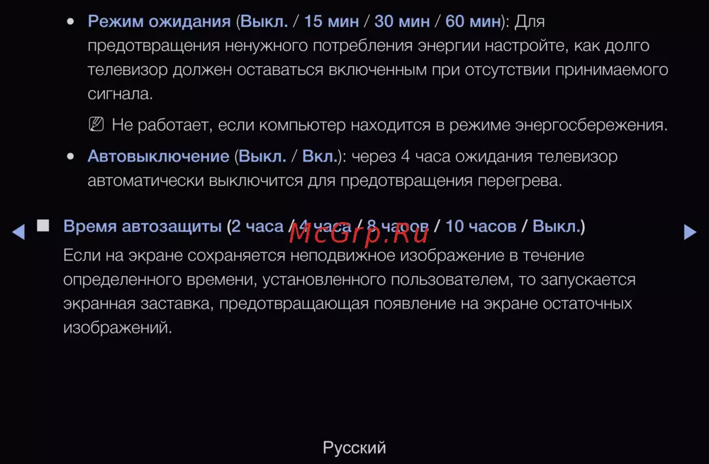 Автовыключение (Выкл. / Вкл.): через 4 часа ожидания телевизор